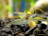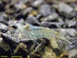 faj kék változata. Halvány kék színű, apró termetű garnéla, a